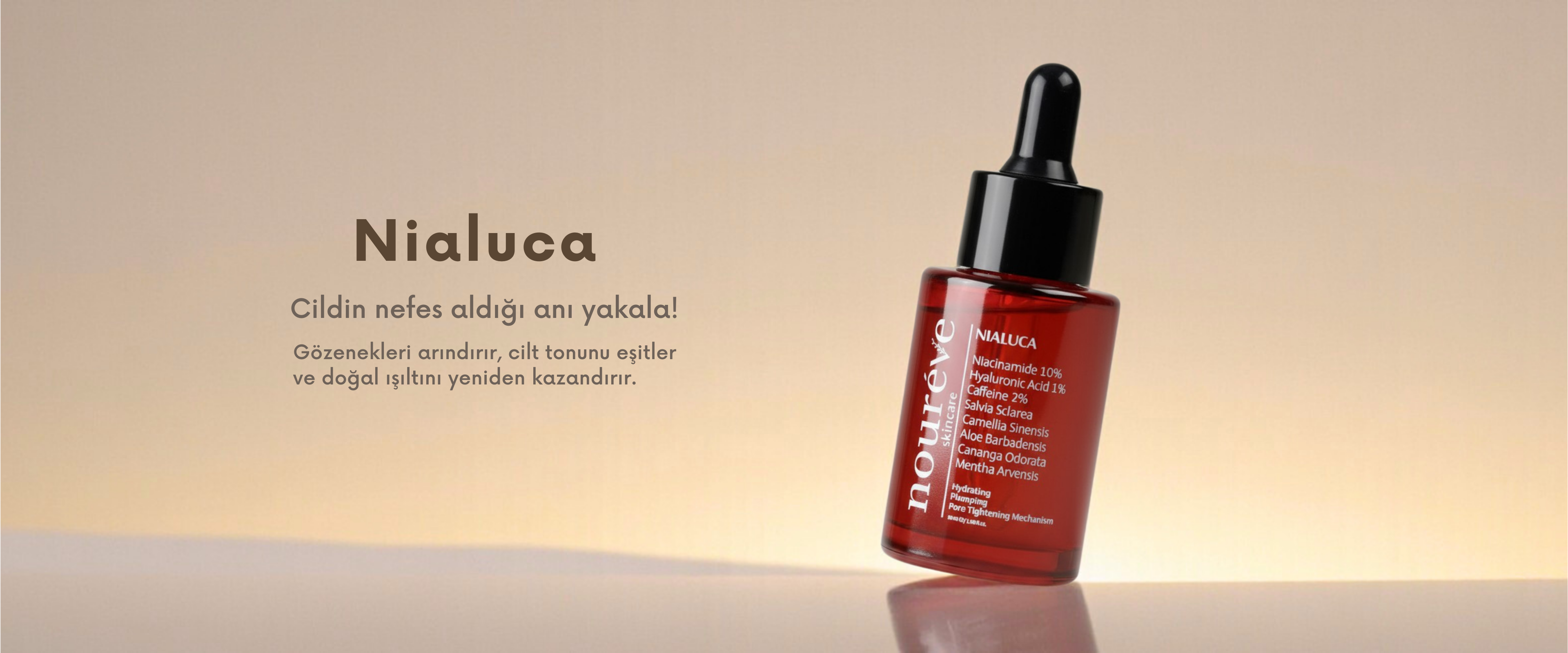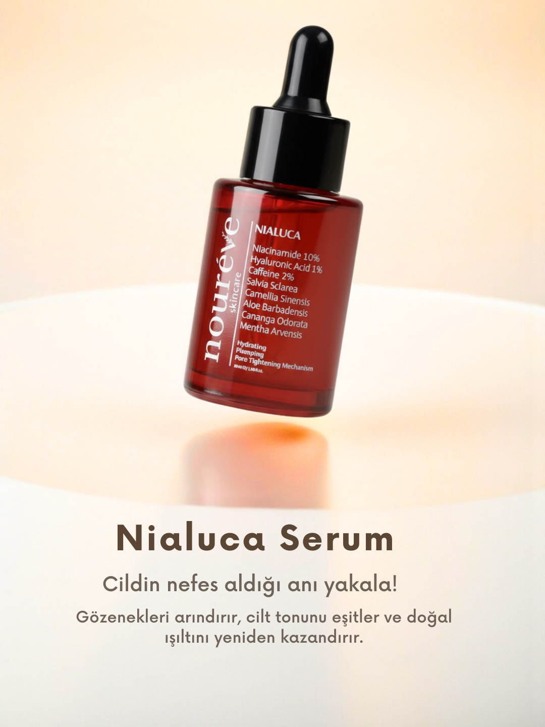 Nialuca Serum – Gözenek Sıkılaştırıcı&Yaşlanma Karşıtı Cilt Serumu, Niasinamid, Hyaluronik Asit, Kafein