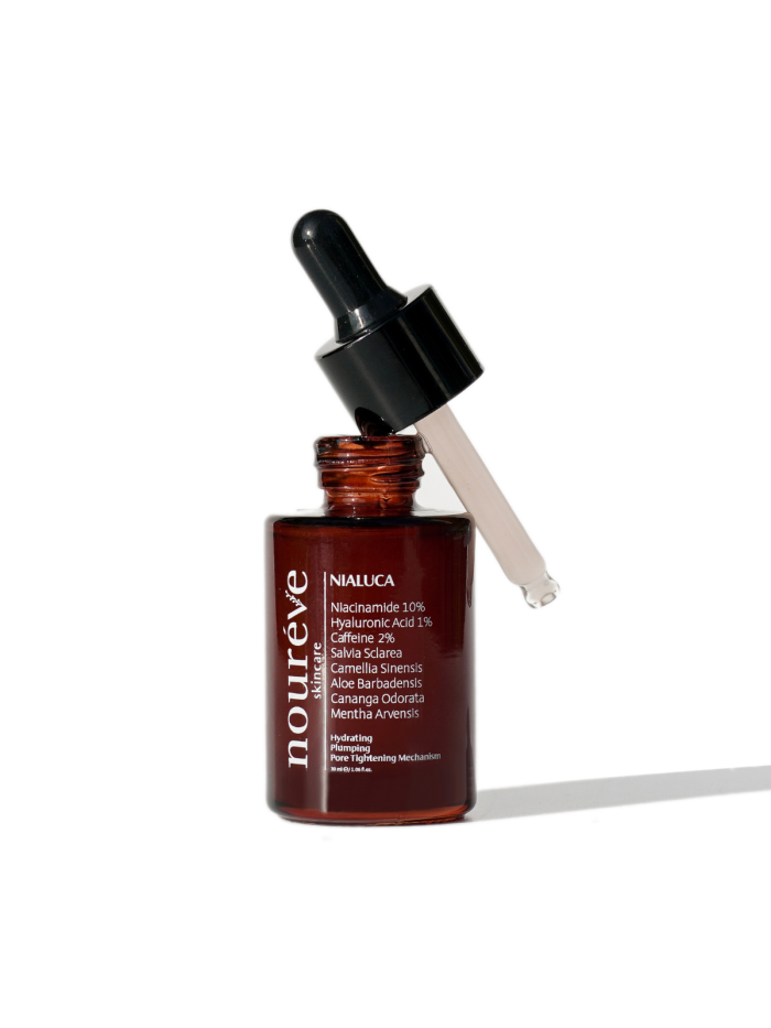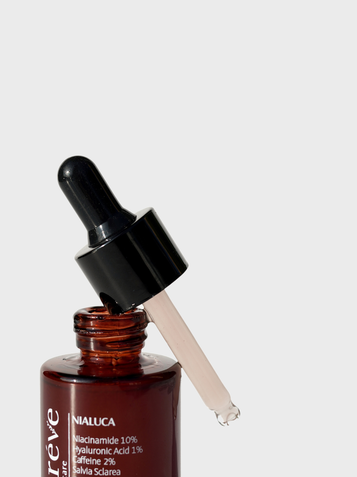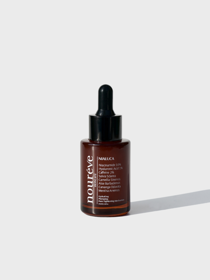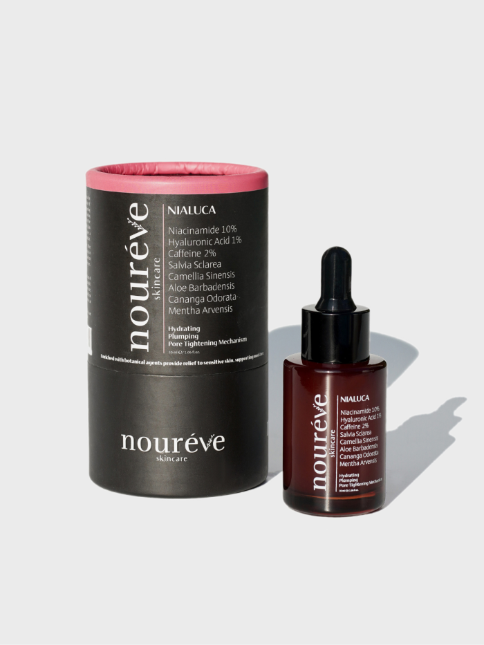 Cilde çeşitli faydalar sağlamak için sinerjik olarak çalışan Niasinamid (10%), Hyaluronik Asit (1%) ve Kafein (2%) dahil olmak üzere benzersiz bir formülasyon. Niasinamid ince çizgilerin ve kırışıklıkların görünümünü iyileştirmenin yanı sıra cilt dokusunu ve tonunu iyileştirme, düzenli kullanımda derin gözenekleri tedavi etme etkisiyle bilinir. Hyaluronik asit, optimum hidrasyon seviyelerini korumak için nemi cilde çeker ve hapseder. Kafein, damar daraltıcı özelliği sayesinde cilde enerji verici etkiye sahiptir. Ek olarak, formülümüz, kızarıklığı ve tahrişi azaltmak için yatıştırıcı ve antienflamatuar etkiler ile daha parlak bir cilt için aydınlatıcı faydalar sağlayan Adaçayı, Yeşil çay ve Aloe vera ekstraktlarını içerirken, Nane yağı ve Ylang ylang yağıyla cildinizdeki ferahlığı hissedin.